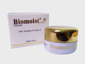 Biomoist is a specially formulated cream containing AHA, Squalene and vitamin E, which will make facial and neck skin appear smooth, soft and shiny. Reguler use will help prevent appearance of facial wrinkles.
