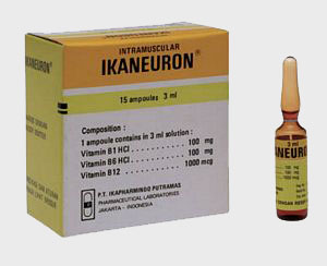Dosage and Administration :Ikaneuron ampoules may be administered by the i.m, route. As a rule, one ampoule should be administered daily until the acute symptoms subside. Maintenance dosage or in milder cases : 2-3 ampoules weekly.Tablet : 1 tablet per day.